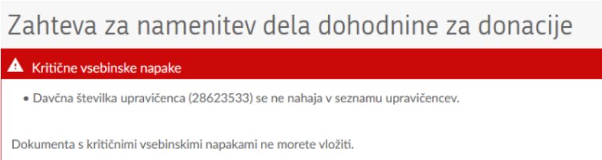 Ker nas še vedno obveščate, da se ob poskusu namenitve dobrodelnega deleža dohodnine našemu društvu pojavi zgornje opozorilo.