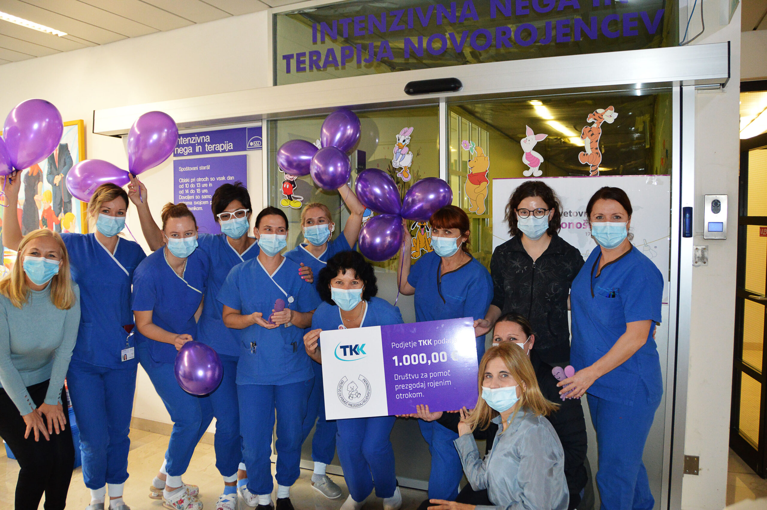 Ljubljana, 17. novembra 2020 – Danes je svetovni dan prezgodaj rojenih otrok, ki je od leta 2008 posvečen globalnemu ozaveščanju o izzivih in bremenu prezgodnjega rojstva. Današnji dan so tudi v podjetju TKK izbrali, da podprejo prizadevanja vseh, ki se trudijo pomagati prezgodaj rojenim otrokom v Sloveniji. »Ponosni smo, da smo podporniki Društva za pomoč prezgodaj rojenim otrokom, ki smo mu danes predali darilni ček v vrednosti 1.000 EUR. V TKK tako izpolnjujemo eno od naših zavez, da podpiramo širšo skupnost in javno zdravje,« je izjavila Katja De Kimpe, vodja trženja v TKK, ter dodala: »V vijolično barvo, ki ponazarja izjemnost ter občutljivost najmanjših rojenih otrok, smo se odeli tudi v podjetju TKK.«