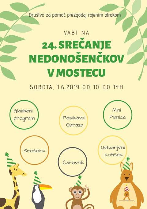 Vstopili smo v najlepši čas leta – pomlad, čas, ko se prebujajo in rojevajo nova življenja in čas, ko se dogajajo same lepe in zanimive stvari. Tudi za naše Društvo za pomoč prezgodaj rojenim otrokom se sedaj začenja najbolj zanimiv in zaposlen del leta. Začeli smo s pripravami na letošnje 24. srečanje nedonošenčkov, ki bo potekalo v soboro 1.6.2019 s pričetkom ob 10. uri. Srečanje bo potekalo na vsakoletni lokaciji, RC Mostec Ljubljana.